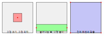 - 예: 화면 아래에 있는 대화창 (폭은 늘어나고 높이는 고정)