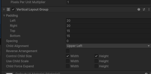 vertical layout group 요소에 하나씩 설명을 해드리자면